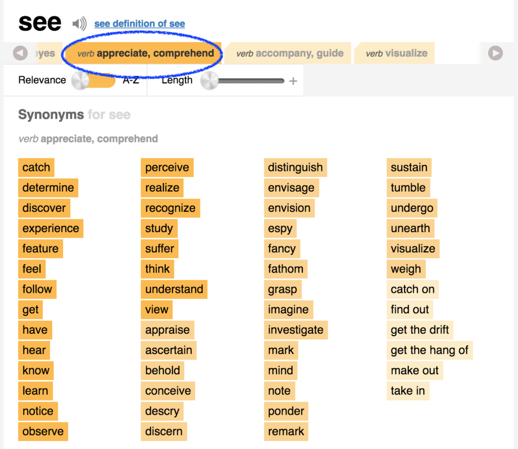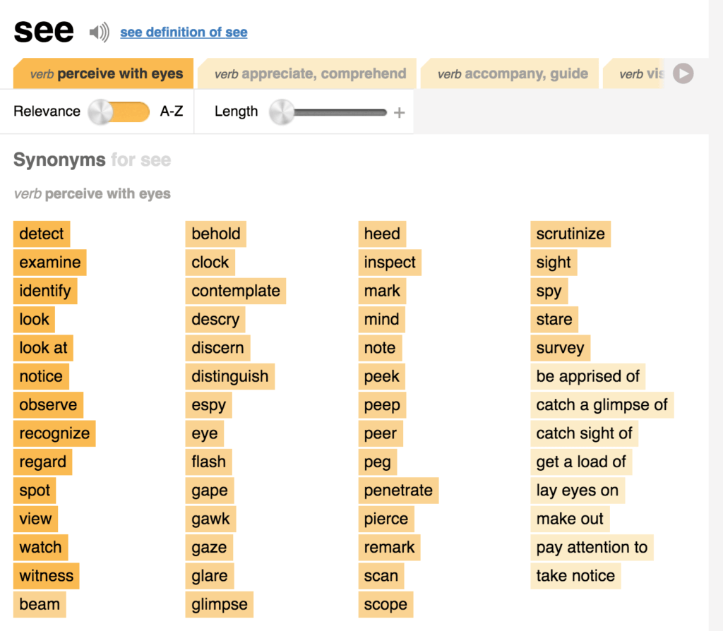 では “see” という単語をシソーラスで見てみましょう。