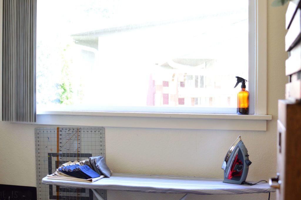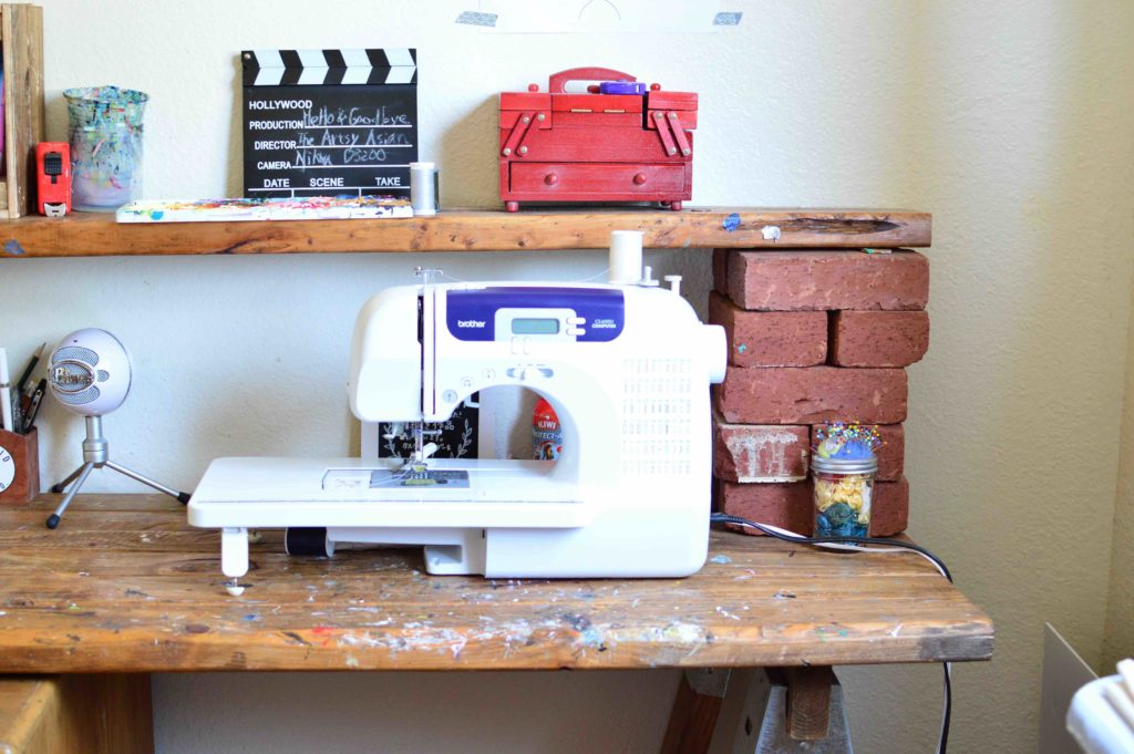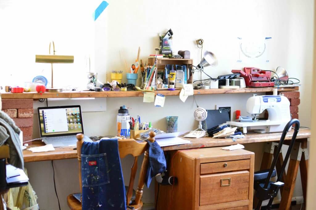 左半分はブログを書いたり作品制作全般に使用し、右半分はミシン用スペースになっています。