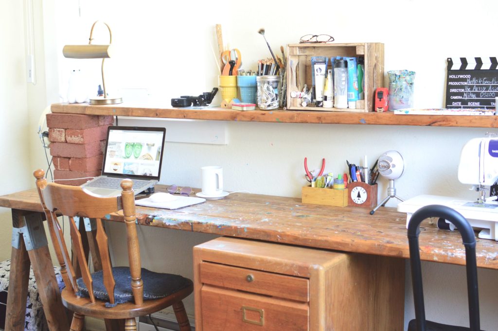 実はこの机、ワシントン州に引っ越して来てすぐ夫と二人でDIYしたもの。