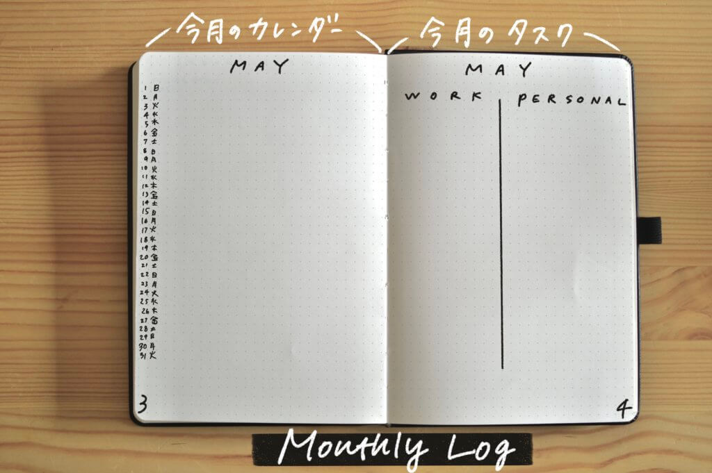 3. Monthly Log: 月次カレンダー&タスクリスト
