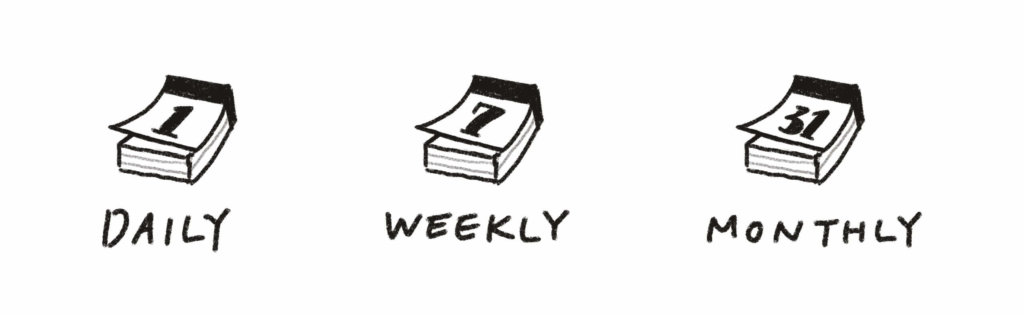 基本のリフレクションはデイリー/ウィークリー/マンスリーの3種類。私の場合これに加えて6月末と年末の半年ごとに大きなリフレクションをしています!