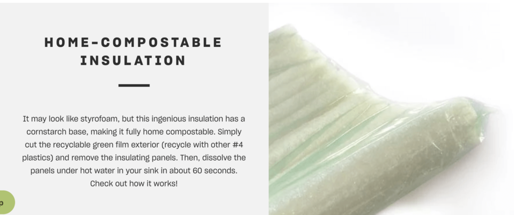 さらに断熱材は自宅で堆肥可能だそう!熱いお湯を断熱材に60秒程かけるだけで、みるみる溶けていきます。