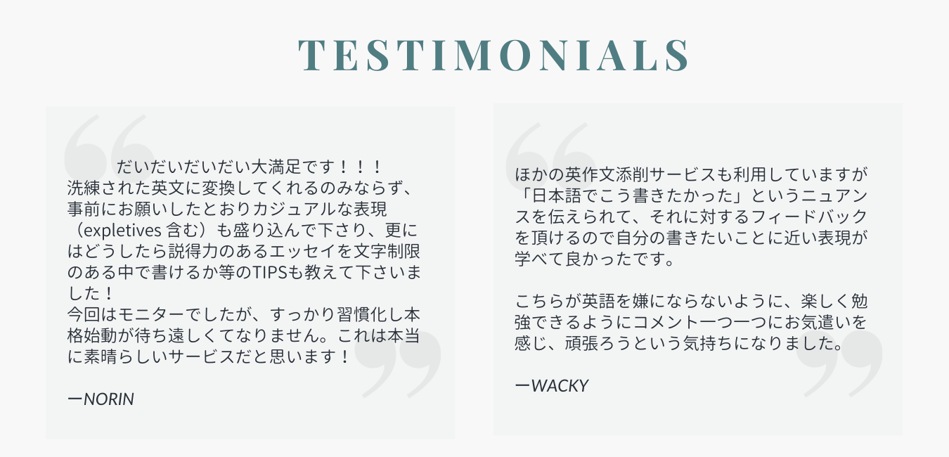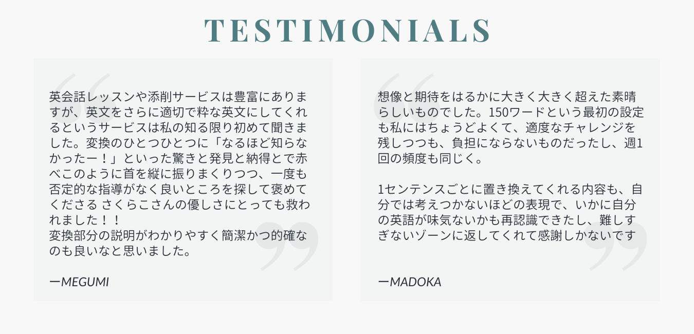 モニター受講頂いた方の英作文をを変換した例です。