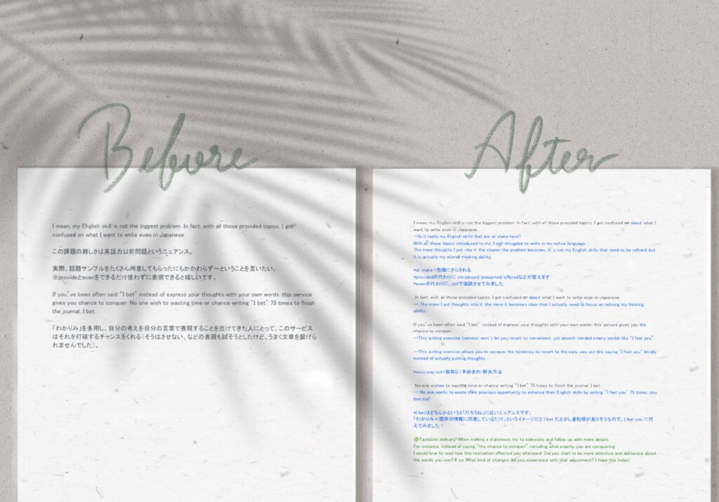 文法の誤りなどの添削はありますが、あくまで「代替表現の提案」がメインになっております。