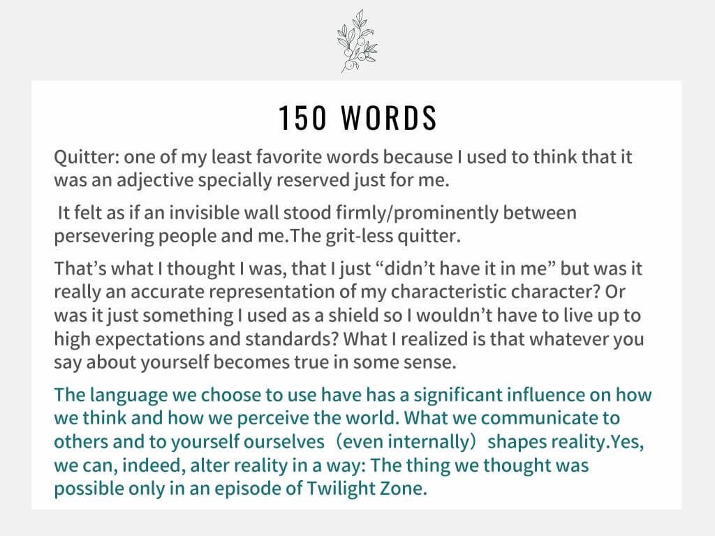 150単語のエントリを週一×4回提出して頂きます。